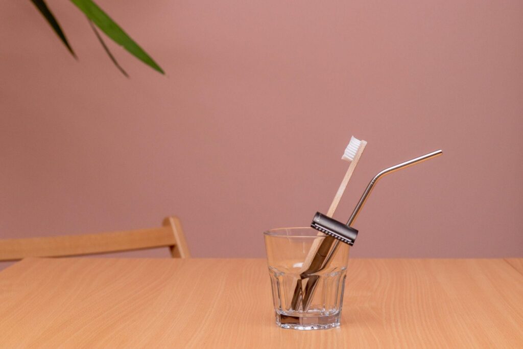Bamboo toothbrush. The handle composts. The nylon bristles go in general waste. Imperfect but a meaningful improvement over a fully plastic brush replaced every three months.
